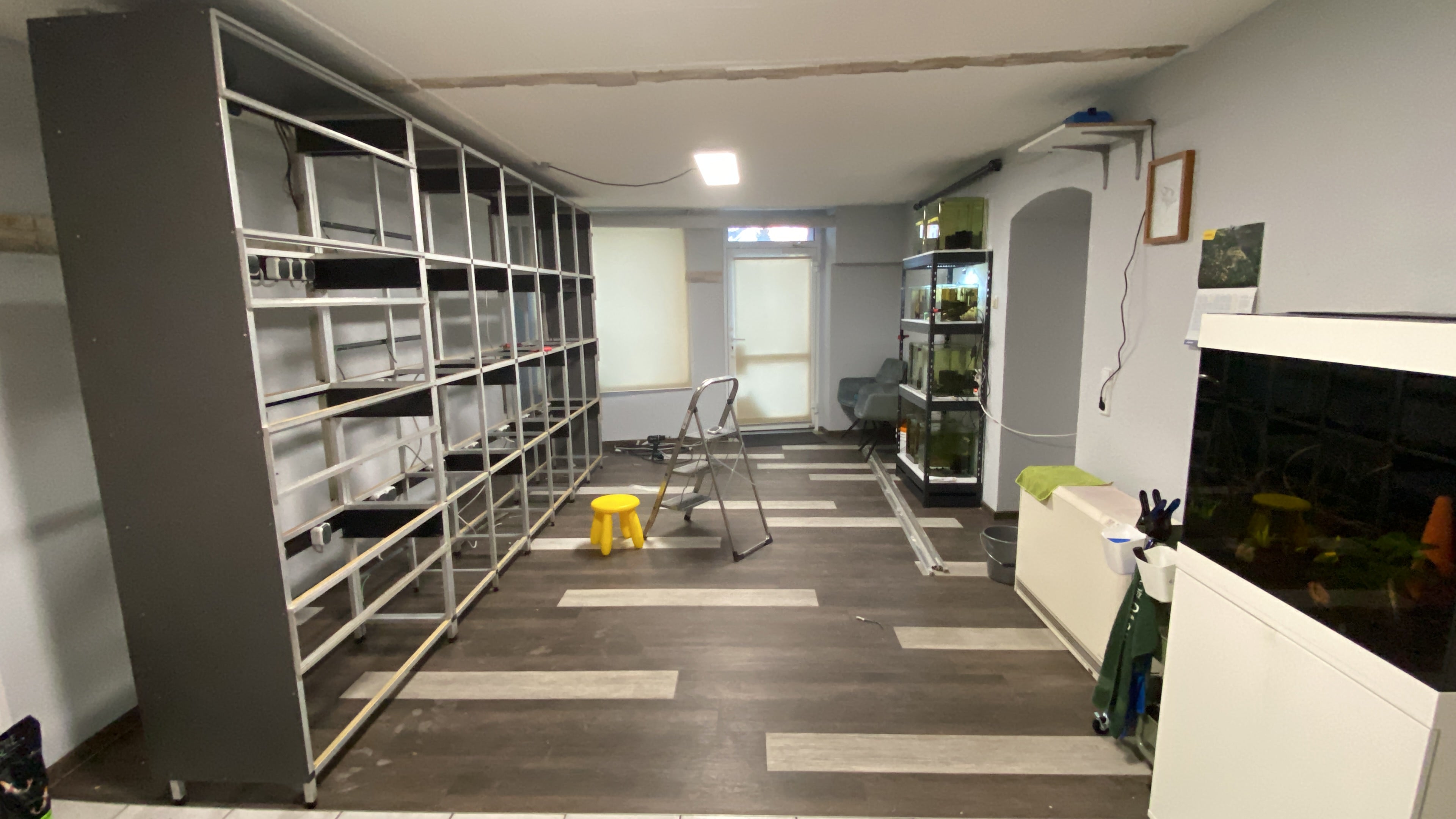 Im Januar 2025 wurde das erste Aquarienregal gebraucht erworben und mit großem Aufwand aufgearbeitet und aufgestellt.
